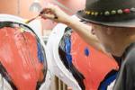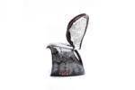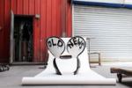 D.F.W.T.M. (Don’t Fuck With The Mouse) is a limited edition of 20 unique chairs, created in response to Mickey Mouse’s 90th birthday—though the full story is a long one. Each chair was made weekly by hand-brushing coloured gel-coat onto a mould, following a new idea developed the night before. The symmetrical form (two ears) inspired experiments with visual palindromes. Text elements, usually mirrored on the mould, played with perception, only revealing themselves correctly once the piece was released.