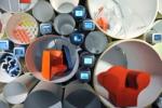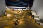 This Paris retrospective marked the first in a series of thee shows by the same name presenting iconic works including limited edition series pieces and mass-produced objects. Prototypes, audiovisual displays and architectural projects were also on show, surrounding a full scale architectural replica and a dividing wall constructed from large cylinders that also served as shelving.